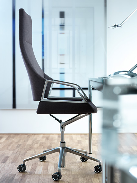 上下昇降機能付きのキャスタータイプは、カンファレンスチェアとしてだけでなく、エグゼクティブのタスクチェアとしても最適。