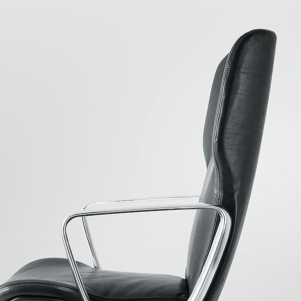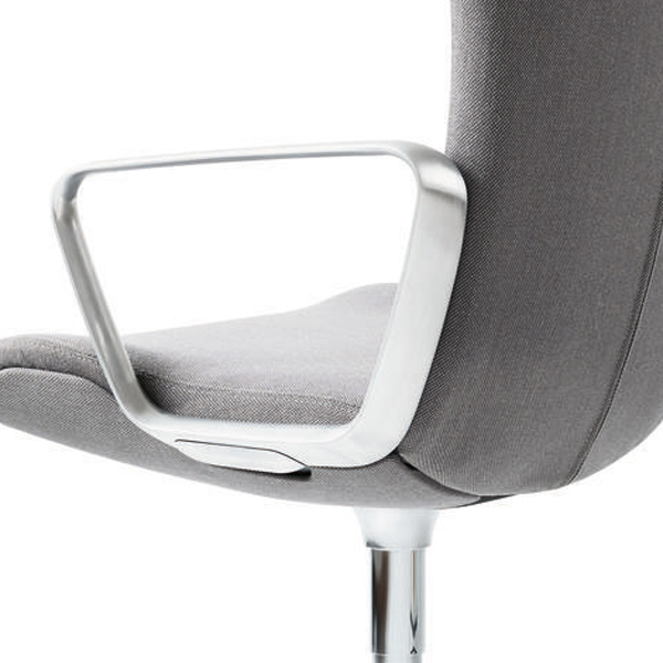 多大な時間を費やして熱心な研究開発を行い、長い歴史で培ったノウハウを惜しみなく注ぎ、手間をかけ製作を行っても、出来上がる製品の外見は、あくまでシンプルでさりげなく。流線型の美しいこのチェアには、ウィルクハーンのデザイン哲学が息づいています。とりわけ、機能を担うパーツである上下昇降とチルトロックレバーをすっきりと一体化させたリングアームの美しさは、Intraの象徴ともいえます。