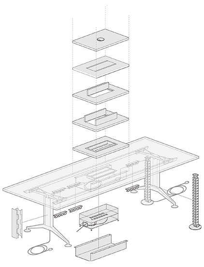ロゴンをはじめ、ウィルクハーンのテーブルのウッド天板には、厚突単板(あつづきたんぱん)と呼ばれる0.5〜0.6mmの厚さにスライスされた天然木の表面材が使用されています。木目プリント紙などのフェイク素材では得られない自然の風合いと温かい手触りが特長です。厚突単板は高価な材料で近年市場での流通は減少しつつありますが、厚みがあるため表面の再塗装修理が可能です。たとえ手間とコストがかかったとしても製品寿命の長い製品を世に送り出すことが、結果ユーザーに経済的なメリットをもたらし社会にもエコロジカルな貢献ができるとウィルクハーンは考えています。