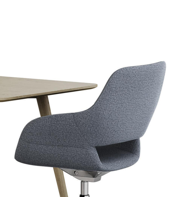 Occoシリーズの特徴である、背もたれと座面の間の開口はもちろんそのままに。横長に取られた開口部が、外観に軽やかさを与え、長時間の着座によってこもってしまう熱を逃がしてくれます。また、開口があることによって、移動の際の持ち運びやすさが格段に上がります。1つの意匠が、製品に複数の長所をもたらす。まるでプロダクトデザインのお手本のようなディテールです。