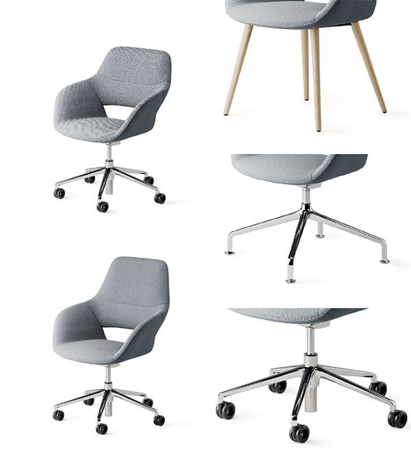 背もたれの高さはスタンダードとミディアムの2種類。また、レッグ・ベースはオーク4レッグ・グライドベース・キャスターベースの3種類の選択肢があります。