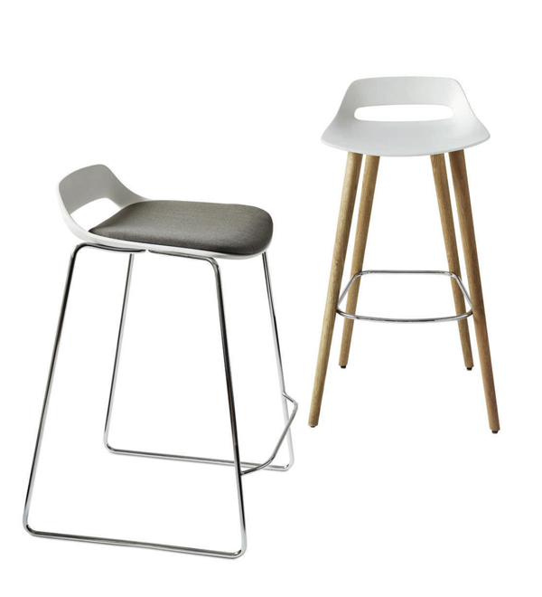 バースツールタイプのOcco BSの座面も、Occo / Occo SCと同じ全6色のバリエーションがあり、座クッションの有無を選べます。レッグはスチール、オークの2種類、座面の高さは650㎜または750㎜から選べます。基本のチョイスは6×2×2×2で48通り。加えて、ベースの塗装カラーとクッションのファブリックの選択肢も、豊富にご用意しています。
